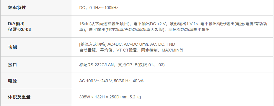 主要參數(shù) :基本:±0.15%;寬頻帶:DC,0.1Hz~100kHz;直接輸入方式下可測65A的電流