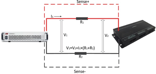 為了保證對被測設(shè)備提供精確的電壓,N8330系列產(chǎn)品采用四線制接法,即兩線用于輸出電壓,另外兩端直接測量 被 測 設(shè) 備 電 壓 。通 過 S E N S E 端 測 量 線 能 消 除 電 源 到DUT之間因引線電阻而引起的電壓降。
