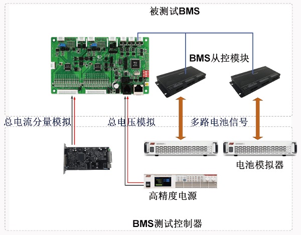 電池管理系統(tǒng)( Battery Management System,BMS)是用來對蓄電池組進行安全監(jiān)控及有效管理,提高蓄電池使用效率的裝置。對于電動車輛而言,通過該系統(tǒng)對電池組充放電的有效控制,可以達到增加續(xù)駛里程,延長使用壽命,降低運行成本的目的,并保證動力電池組應用的安全性和可靠性。動力電池管理系統(tǒng)已經(jīng)成為電動汽車不可缺少的核心部件之一。為了保證BMS能正常工作,需要對BMS做全面的測試。
