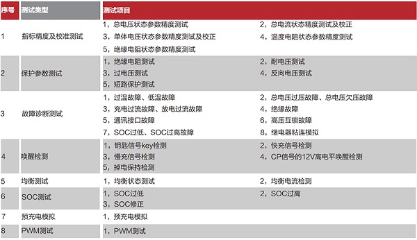 電池管理系統(tǒng)( Battery Management System,BMS)是用來(lái)對(duì)蓄電池組進(jìn)行安全監(jiān)控及有效管理,提高蓄電池使用效率的裝置。對(duì)于電動(dòng)車輛而言,通過(guò)該系統(tǒng)對(duì)電池組充放電的有效控制,可以達(dá)到增加續(xù)駛里程,延長(zhǎng)使用壽命,降低運(yùn)行成本的目的,并保證動(dòng)力電池組應(yīng)用的安全性和可靠性。動(dòng)力電池管理系統(tǒng)已經(jīng)成為電動(dòng)汽車不可缺少的核心部件之一。為了保證BMS能正常工作,需要對(duì)BMS做全面的測(cè)試。