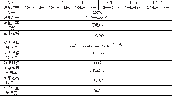 6363/6364/6365/6366/6367/6365A系列一般參數(shù)