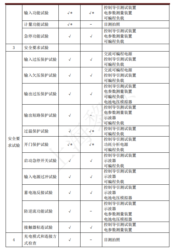 充電機(jī)實(shí)驗(yàn)室檢測(cè)裝置測(cè)試系統(tǒng)可對(duì)下列表格所示項(xiàng)目進(jìn)行測(cè)試并自動(dòng)生 成報(bào)表。